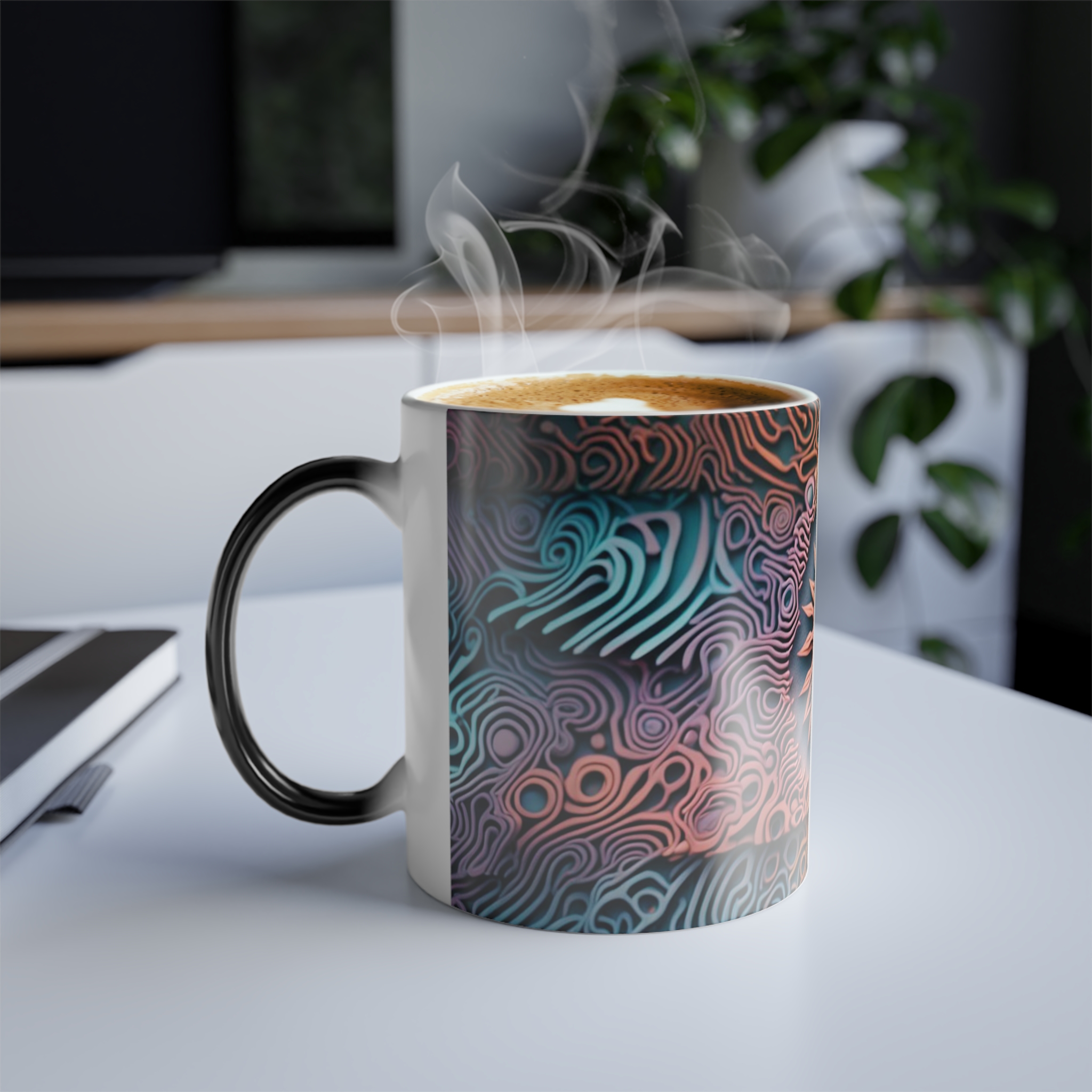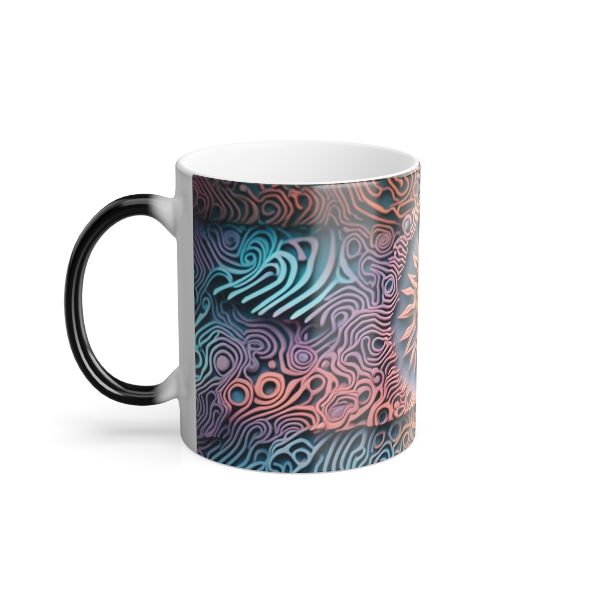 This 11oz color-morphing mug brings a small, everyday moment of wonder to morning routines. When cool, the mug’s black exterior lets the pattern rest like a secret; pour in a hot drink and the vibrant, full-wrap design blooms into view with sharp, glossy color. The ceramic cup feels substantial in hand and shows a bright white interior that contrasts the changing exterior. It’s built for daily use — microwave-safe and free from lead and BPA — though hand washing will keep the glossy print at its best. Use it on quiet winter mornings, at a cluttered desk during late-night work sessions, or as a centerpiece at relaxed gatherings where the reveal sparks conversation.