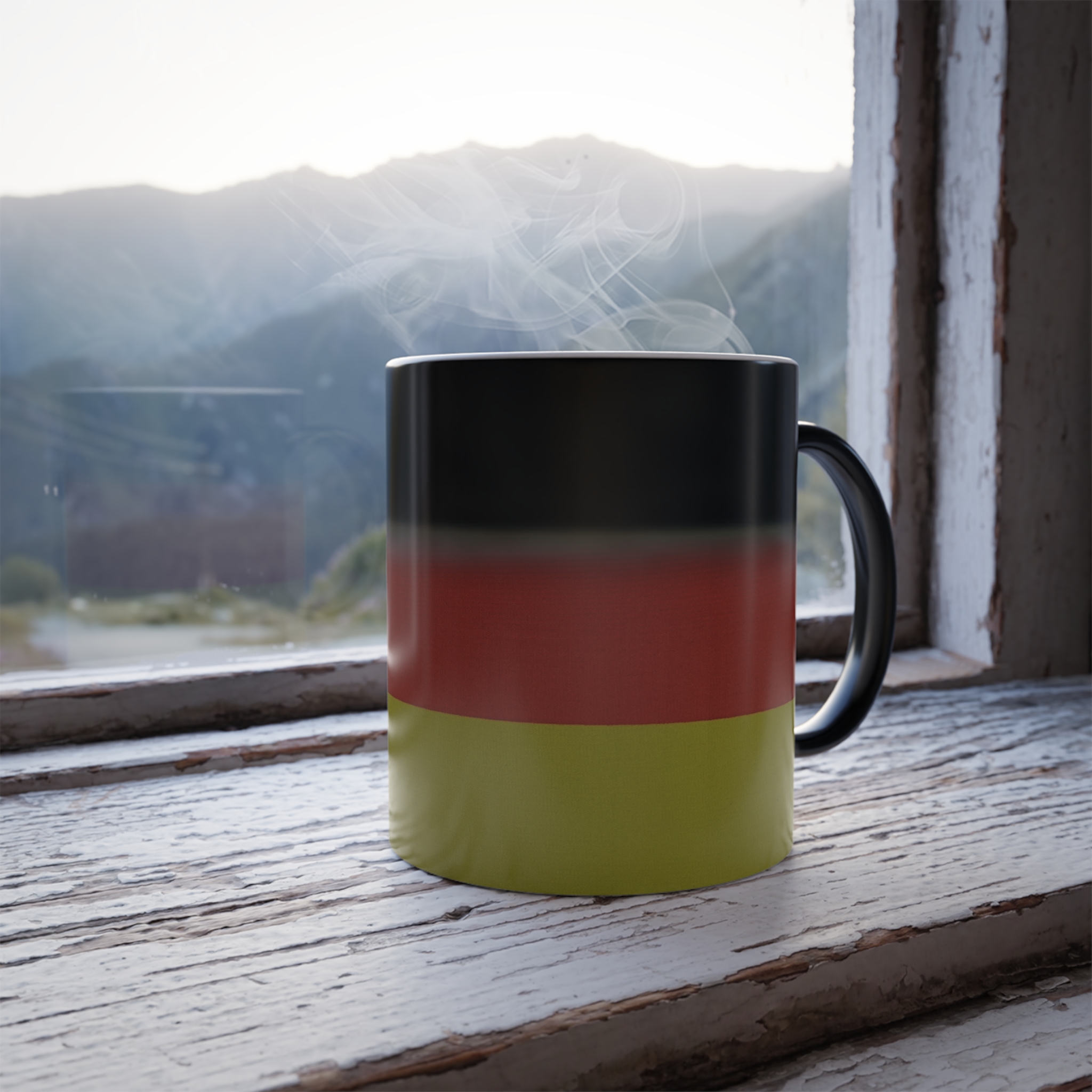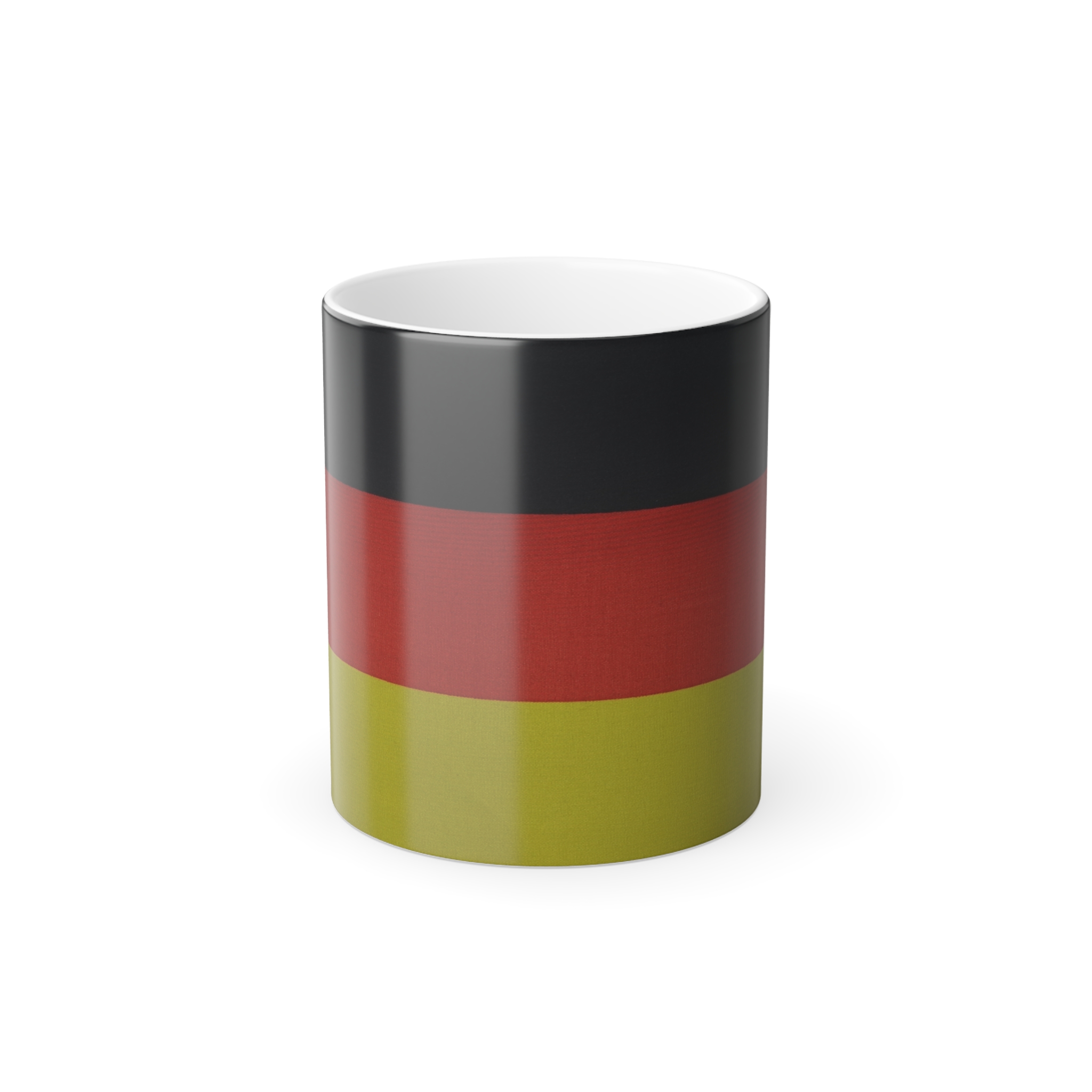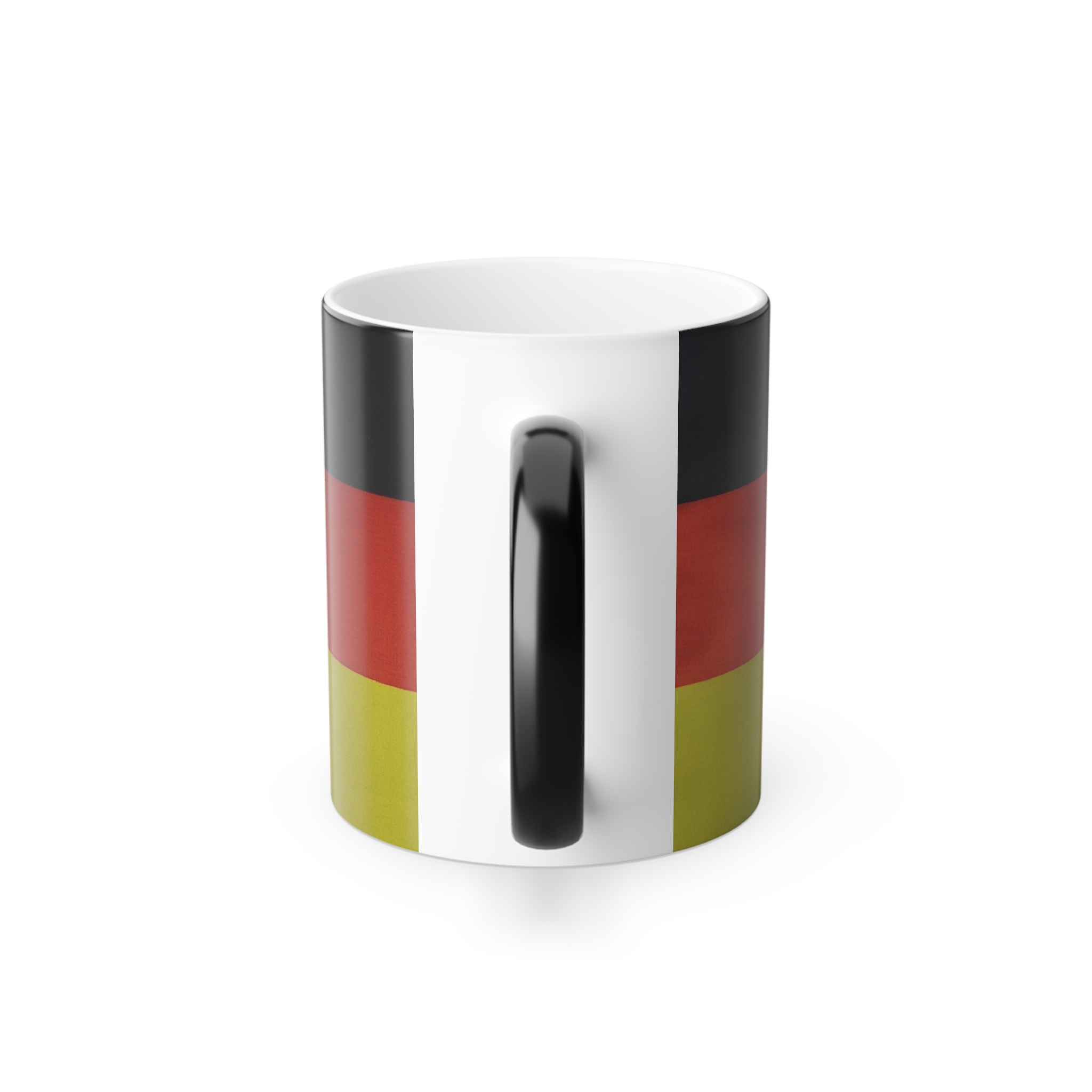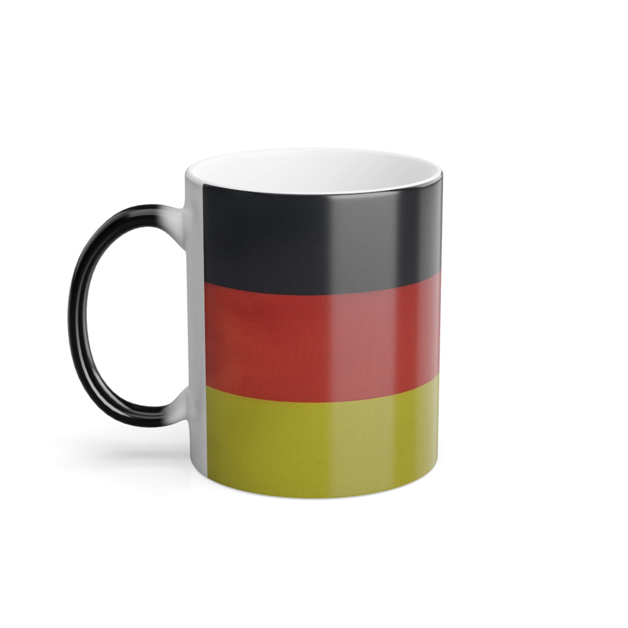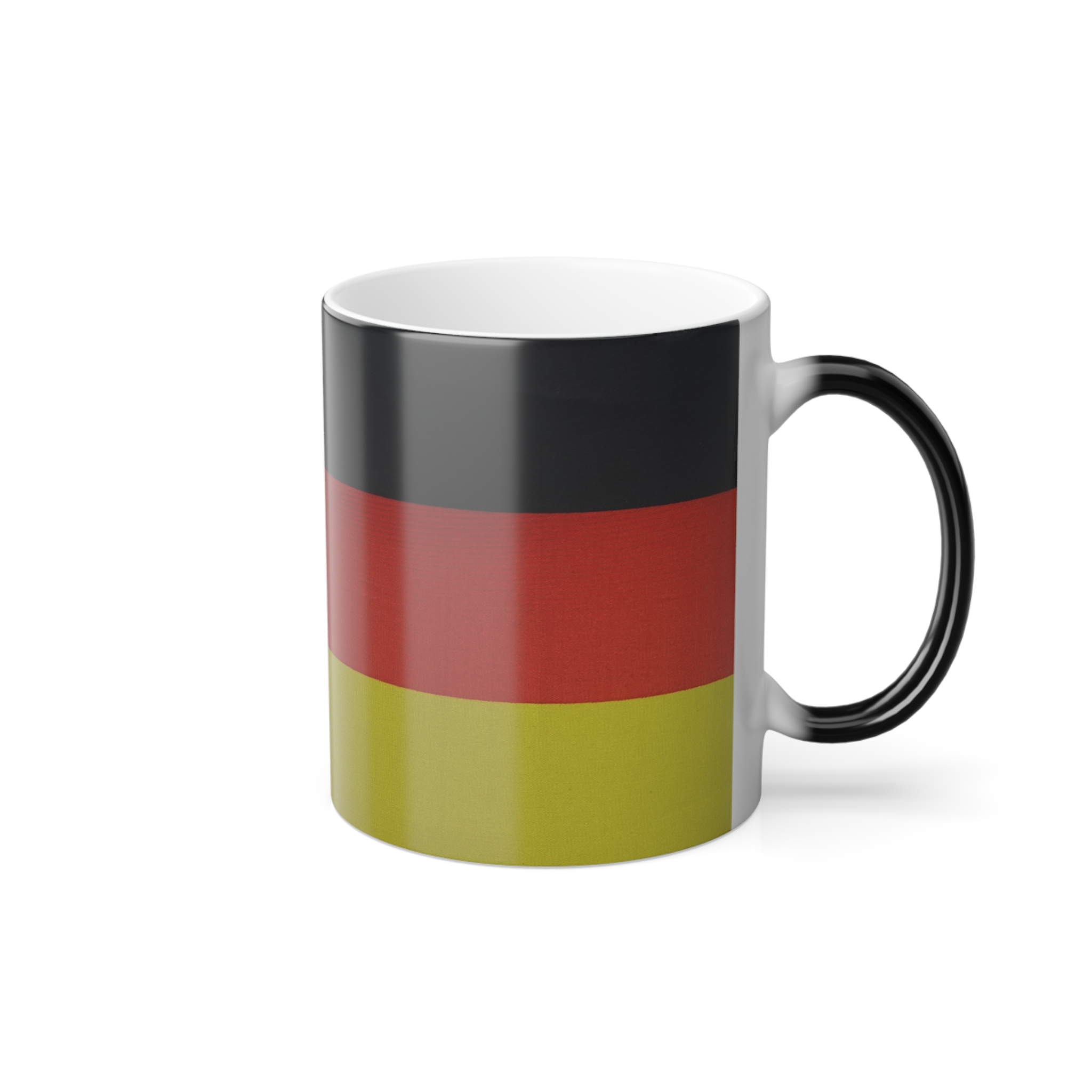 Mugs with Flags are super popular gifts for friends or Expats living in your country. This one changes color and will be the gift that keeps on giving. The heat-reactive surface reveals the German Flag once the mug gets warm. The ceramic cup will go back to its original black outside and white inside when it cools down. The C-shaped handle helps keep a sturdy grip. It comes in one size – 11oz (0.33l) – Warning !! with this mug you may drink more coffee or tea 😉